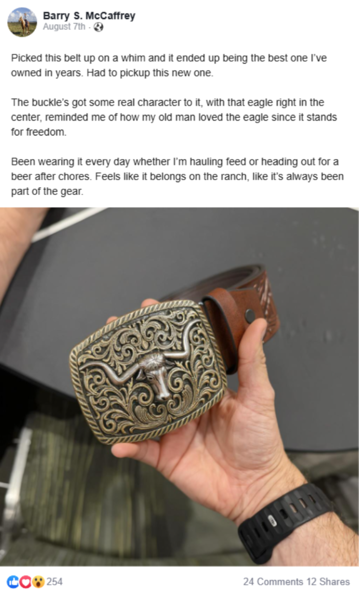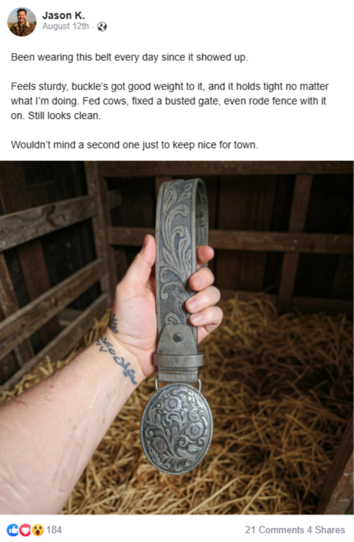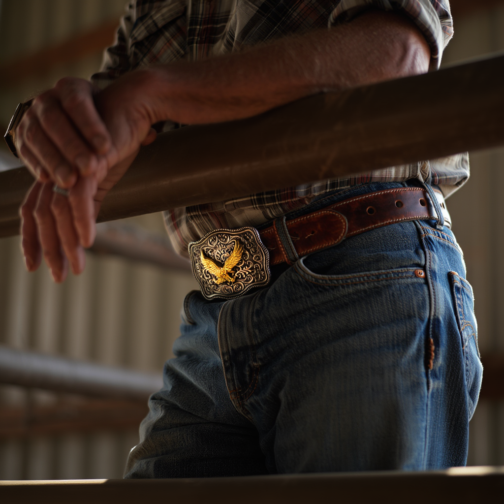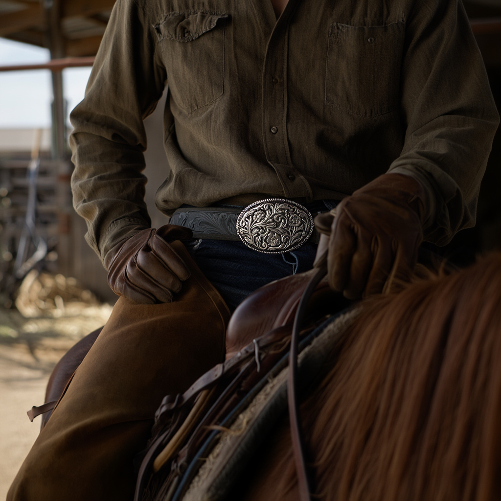 I’ve been wearing this belt every day on the ranch for a couple of months. Whether I’m hauling feed or working cattle, the buckle hasn’t scratched or loosened at all. It’s solid and well-made, and the detailing looks even better in person. Hard to find something this sharp that can handle real work.