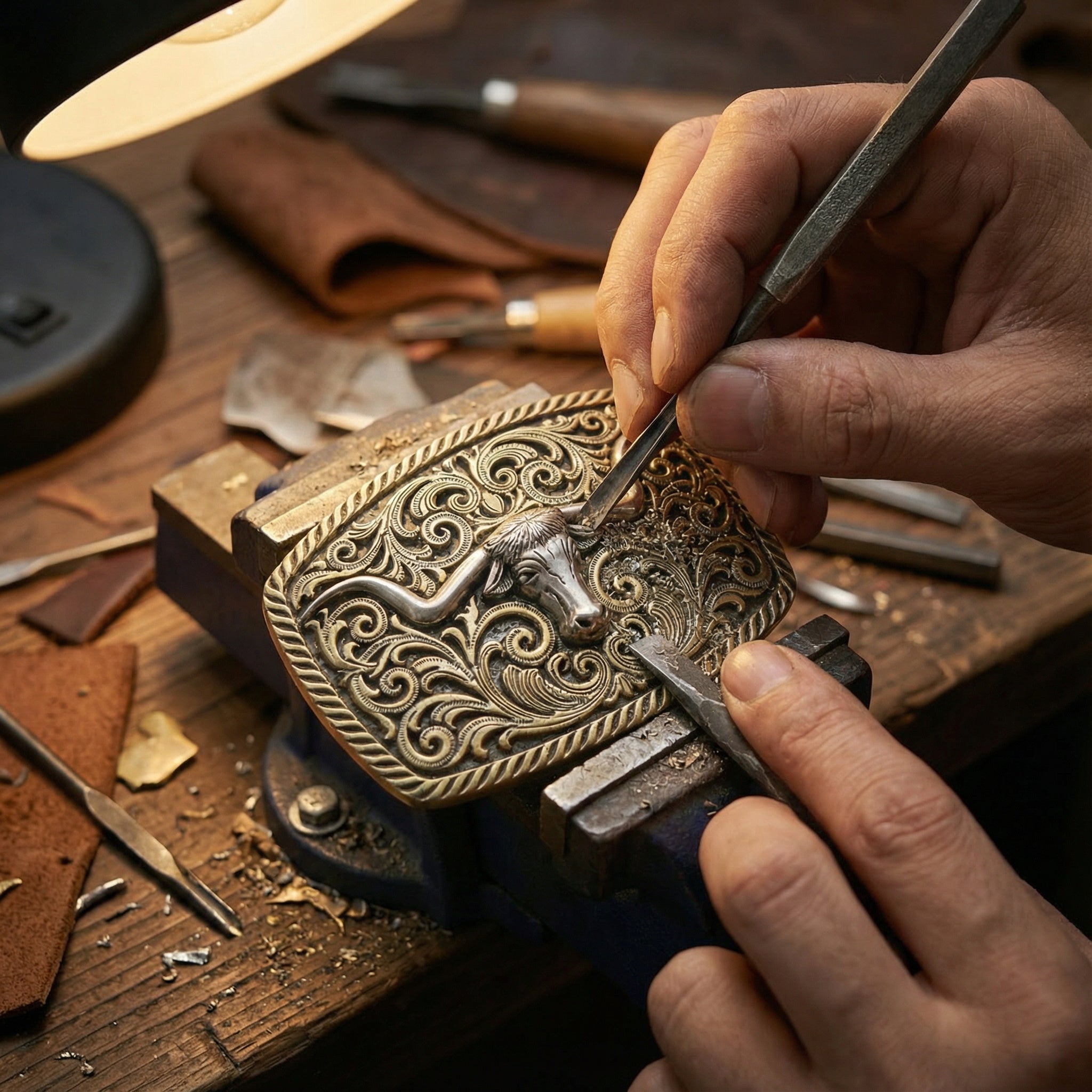 When you wear one of our belts, this is the moment behind it, real artistry forged into the buckle that holds your Western identity together.